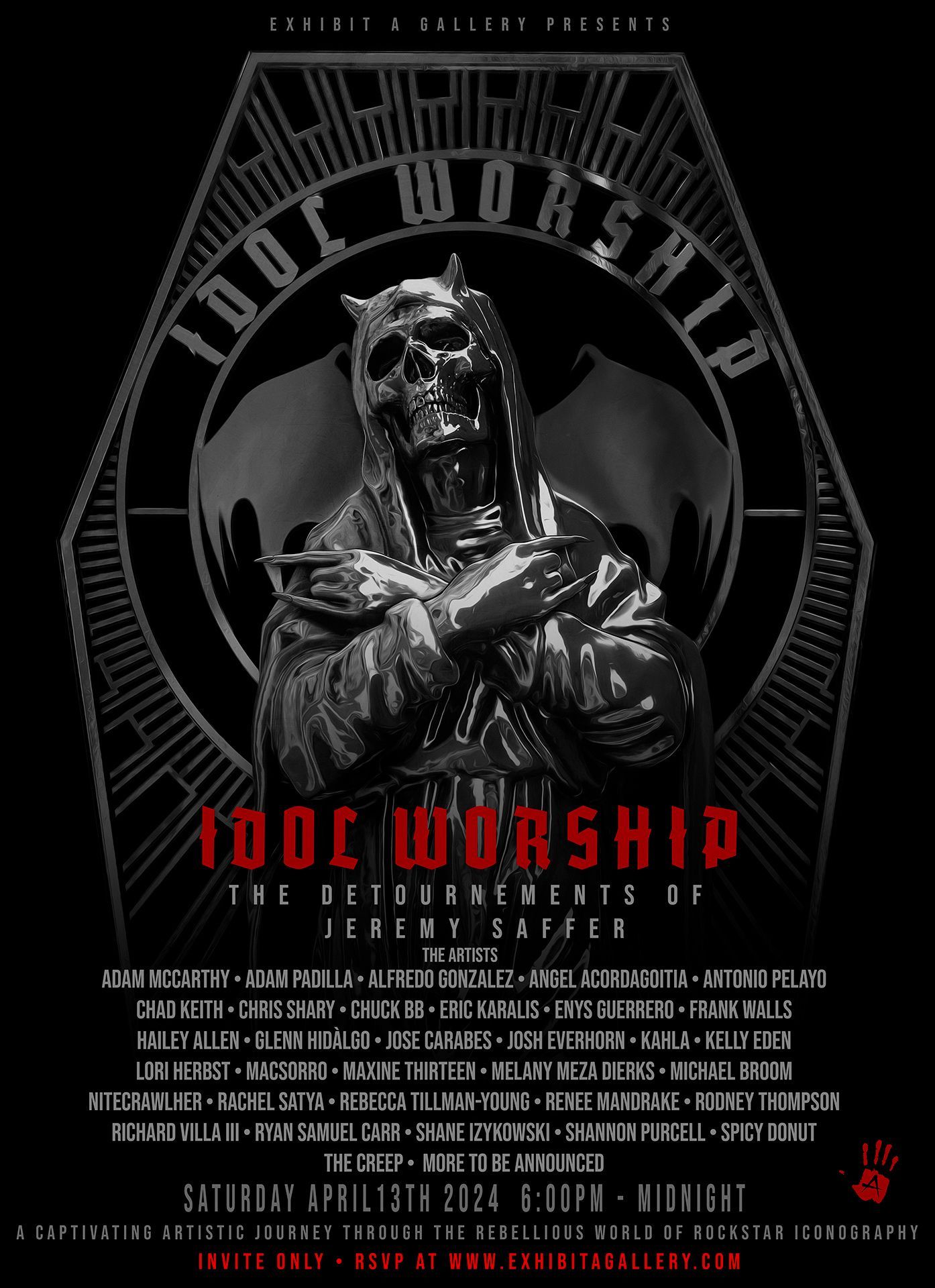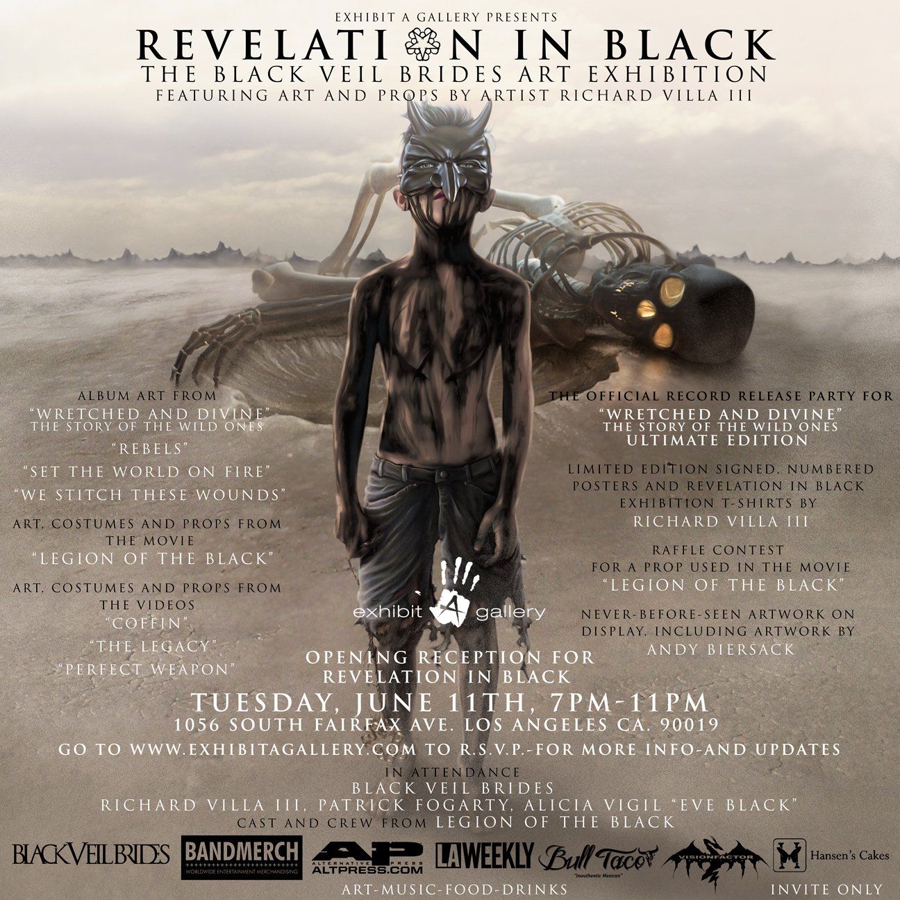 Owned and curated by artist and creative director Richard Villa III, Exhibit A Gallery was established as a haven for artists, musicians, skaters, and creatives of all kinds—a place where artistic expression thrives in a Rock 'N' Roll atmosphere. Villa, whose design clients include BANDMERCH, Universal Republic Records, LAVA Records, Hollywood Records, Frontier Records, and Standby Records, brings a unique vision that blends fine art with street culture and countercultural flair.