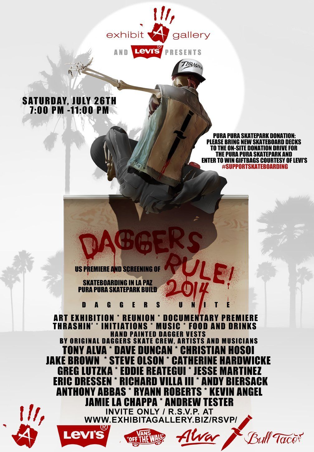 Exhibit A has hosted exhibitions from renowned artists and has collaborated with influential brands and media outlets like KROQ, Juxtapoz Magazine, Thrasher Magazine, Alternative Press, LA Weekly, TAMA, Monster Energy, FOX, Levi’s, Dr. Martens, Fuel TV, G4TV, Scion, Jarritos, Vans, and many others.